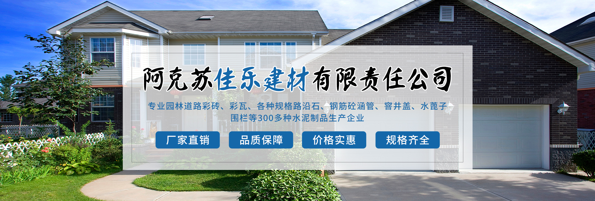 阿克蘇佳樂建材有限責任公司成立于2005年,是園林道路彩磚、彩瓦、各種規格路沿石、鋼筋砼涵管、窨井蓋、水蓖子、圍欄等300多種水泥制品生產企業。阿克蘇佳樂建材有限責任公司位于阿克蘇市塔南路13號(石油公司往南200米)。現公司在阿克蘇市、阿瓦提縣、烏什縣、拜城縣、輪臺縣、焉耆縣等地有分廠十余個,為地方城鄉建設添磚加瓦。 多年來,公司致力于設備的更新,新產品的研制,用更科學更美觀的產品順應...